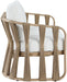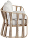 Woven polypropylene rope and resilient waterproof fabric give the San Pietro outdoor patio loveseat a striking, art deco-inspired look. Wrapped in a natural aluminum teak frame, it's built to withstand the elements while maintaining its elegant appeal. Perfect for lounging outdoors, this piece blends sophisticated style with ultimate comfort.