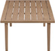 Clean and understated, the Laguna natural teak finish aluminum outdoor patio coffee table offers effortless versatility for any outdoor setting. Its slatted top and slim tapered legs give it a modern, airy feel while ensuring lasting durability. A contemporary essential, it's the perfect foundation for casual gatherings or everyday lounging.