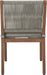 Make your outdoor oasis even more inviting with this Maui Outdoor Patio Dining Side Chair. Crafted with an aluminum frame to look like teak without the maintenance requirements, this dining side chair offers both style and convenience. Its resilient fabric cushions are water-resistant and plump and have quick-dry foam inserts. With its contemporary resort look, this chair adds sophistication to any patio, porch, or deck setting. Embrace the essence of outdoor comfort and style with this elegant addition - your perfect companion for leisurely moments outdoors.