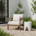 Water-resistant fabric and a natural acacia wood frame make the Newport patio chair a standout for any outdoor setting. Built with quick-drying foam and thermowood treatment, it's designed to handle the elements without compromising style. Perfect for lounging, this contemporary chair blends casual comfort with sleek sophistication.