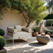 Bold art deco lines and plush beige water-repellent fabric define the Portofino patio chair. Off white aluminum frame, it balances striking design with outdoor durability. Perfect for lounging under the sun or stargazing in style, this chair turns any outdoor space into a chic retreat.