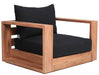 Make this Tulum teak outdoor patio chair the go to spot for relaxing and entertaining guest in your outdoor space. This chair features resilient water resistant fabric making it the perfect spot to rest your feet and enjoy the company of friends or family while you take in the sunrise. Teak construction makes it a tough addition for the patio or porch and gives it the longevity and durability it needs to weather the elements with beautiful ease. Pair it with other items from the Tulum collection for a look that impresses from every angle.