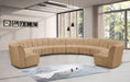 Create a seating group that works for every possible situation with this Infinity 10-piece sectional and other pieces in the Infinity collection. Upholstered in soft Camel velvet material that feels great against the skin and offers long-wearing beauty, this piece fits with other Infinity items for an infinite number of combinations that get your seating requirements just right but that look just as nice when used on their own.