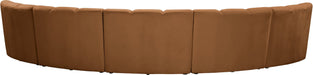 Create a seating group that works for every possible situation with this Infinity modular 5-piece sectional and other pieces in the Infinity collection. Upholstered in soft Saddle velvet material that feels great against the skin and offers long-wearing beauty, this piece fits with other Infinity items for an infinite number of combinations that get your seating requirements just right but that look just as nice when used on their own.