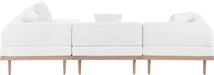 Sleek lines and soft water-resistant fabric bring contemporary style to the Laguna outdoor patio modular sectional. Crafted with a natural teak finish aluminum frame and quick-dry foam, it's built for ultimate outdoor relaxation. Rearrange or add to the set for endless configurations, creating a versatile lounging experience tailored to your space.