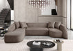 Make movie night at home a regular (and comfortable) affair when you bring this Rita fabric sectional into your living room, den or game room. This handsome unit offers plenty of room for the gang to spread out and get cozy, and its upholstered on every square inch with soft polyester fabric for a dreamy feel against your skin as you nap or binge Netflix. Included coordinating pillows complete the look and add to the sectional's cozy vibe.