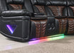 Air Gel Leather, Black/Brown Two Tone, Bluetooth Speaker Capability, Power Motion, RGB Lighting, Side Storage, Pillowtop Arms and Headrest, Cup Holder Storage Compartments