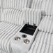 Gray Teddy Bear Fabric, Vertical Accent pattern, Pillowtop Arms & Headrest, Four Cup Storage Compartment, Built in Bluetooth Speakers, LED Underglow Accents, Power Reclining