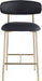 Grace, comfort, and elegance collide in the design of this Lupita vegan leather counter stool. Upholstered in soft black vegan leather and supported by a matte metal frame, it radiates luxury and modern sophistication. Perfect for kitchen islands or home bars, its counter height and contemporary design ensure both style and comfort. Elevate your space with this statement piece that harmonizes versatility and aesthetic appeal, promising to be a stunning addition to the space of your choice.