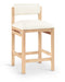 Soft textures and timeless design meet in the Roundhill counter stool, upholstered in a smooth vegan leather. A natural wood frame enhances its art deco silhouette, bringing warmth and sophistication to your dining space. Whether styled solo or paired with a set, this chair elevates the ambiance with understated elegance.