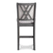 The Amy counter chair is designed to bring a perfect blend of durability, comfort, and style to your dining room. Included in this set are two counter chairs along with all the necessary hardware and assembly instructions for effortless setup. Crafted from solid Rubberwood, these chairs embody both the long-lasting and the inherent beauty of wood construction. The resilient and attractive upholstery features 100% polyester fabric, covering the seat and back cushions for a comfortable and lasting seating experience. Supported by solid wood legs reinforced with base stretchers that cleverly double as footrests, these counter chairs are built to last. The stylish design elements, including tapered legs, double X-back wood detail, weathered edges, and plush cushions, create a relaxing and distinctive chair that seamlessly complements your dining space.