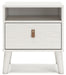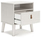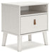 Dare to take minimalism to the max. This nightstand has an air of sleek simplicity thanks to its painted finish with subtle replicated wood grain. Magnificently mod splay legs are a compelling complement to the streamlined design. And with two different faux leather drawer pulls that allow you to customize the nightstand to suit your space, there's no doubt about it: This contemporary piece is sure to become a classic.