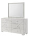 Transform your bedroom into a contemporary sanctuary with this sophisticated and stylish furniture ensemble. Defined by its bold geometric accents and pristine high-gloss finish, this collection exudes modern elegance while maintaining a clean, minimalist aesthetic. The centerpiece bed is enhanced with a dramatic LED-lit headboard, adding ambiance and a touch of luxury to your space. Coordinated storage pieces, including a dresser, chest, and nightstands, provide ample organization while showcasing sleek hardware and clean lines. Perfect for creating a cohesive and serene atmosphere, this bedroom group offers the perfect blend of form and function, making your retreat as stunning as it is practical.