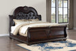 100% Solid Wood, & Button Tufting, Sleigh Style Headboard and Footboard, Espresso Brown PU Headboard Panel, Oiled Bronze Case Handles, & Ornate Accented, Details Along the Bed and Cases, & 100% Real Marble Case Tops, Twisted Bun Feet for both Cases and Bed Frame