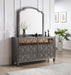 Ash Gray Finish, Hardwood Solids, Hand Applied Brushed Bronze Nail Head Trim
