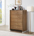 Warm Brown Finish, Brushed Stainless Steel Accents, Gold Accents, Acrylic Accents, Replicated Wood Finish