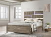 Weathered Finish, LED Backlit Headboard Accents, Low Profile Footboard, Floating Headboard Panel Illusion Accents, Flush Mounted Hardware Case Fronts, Brushed Bronze Case Hardware