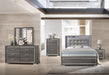 Replicated Gray Finish, & LED Backlit Headboard, Vinyl Faux Crystal Tufted Headboard, Mirrored Accents, & Low Profile Footboard, Bedframe Packed in One Box