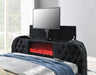 B540 - Velvet Queen Bed With Fireplace, TV Mount & Bluetooth Speaker & USB - Black