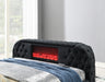 B540 - Velvet King Bed With Fireplace, TV Mount & Bluetooth Speaker & USB - Black