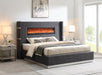 B544 - Velvet King Bed With Fireplace & Bluetooth Speaker & USB - Gray