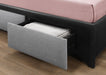 Bluetooth Audio System, Lighting System (Touch on/off), USB Ports, Drop Down Arm Rest, & Cup Holder, Two Storage Drawers, Bed Frame with Fabric Accents