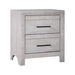 Meet the Biscayne 2 Drawer Nightstand, meticulously crafted with durable manufactured wood and adorned with an Eco-Friendly decorative laminate for enduring strength and stability. Its Driftwood finish creates a light, airy ambiance, perfect for unwinding at the end of a busy day. The dark iron finish drawer pulls add a contemporary touch, contrasting beautifully with the nightstand's clean design. Versatile in style, this nightstand seamlessly blends with various motifs, from coastal to contemporary, farmhouse to urban rustic. Plus, with time-tested drawer construction featuring English dovetail joinery and smooth metal center drawer glides, functionality meets elegance in this essential bedroom piece.
