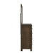 The Blue Ridge Mirror by New Classic Furniture is a sustainable marvel, crafted with an eco-friendly ethos using reclaimed solid wood from various sources. Embracing the naturally timeworn appearance of aged wood, each mirror showcases unique characteristics like nail and bolt holes, bug holes, water and mineral staining, checking, and open knots. Selected with care, no two pieces are alike, preserving the distinctiveness of the wood. The strength of reclaimed wood, seasoned through years of use and reinforced with a finger joining technique, ensures stability and durability. The multi-step finish, featuring rustic brown with gray undertones and charcoal glazing, enhances the heavily distressed design. This mirror not only reflects your style but also a commitment to environmental responsibility. Framed with solid wood, it provides a quality reflection with a low-distortion, beveled edged glass, embodying a perfect blend of sustainability and elegance. Compliant with safety standards, the Blue Ridge Mirror adds a secure and eco-conscious touch to your living space.