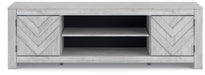 This TV stand embraces a classically charming aesthetic and repurposes it for modern living. Its finish to your love of vintage character, while the chic chevron pattern is effortlessly on trend. And with hidden storage behind the doors, your media accessories stay tucked away in style.