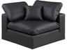 Give your space a whole new look with this Comfy vegan leather corner chair. This handsome chair fits nicely with other items in the Comfy collection and is a versatile seating option designed for adaptability, comfort and style. Wrapped in rich durable vegan leathered upholstery, this chair offers a plush embrace of overstuffed down feather cushions, carefully crafted to deliver the highest level of comfort. The perfect seat for creating an oasis for relaxation, this chair has thick foam surrounding its frame for added support and coziness.