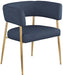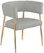Enliven your dining area with the Creston linen textured fabric dining chair. Upholstered in rich durable linen textured fabric, this dining chair is not only stylish but also built to last. The brushed gold metal frame adds a touch of luxury, perfectly complementing its contemporary design. The curved back and plush cushioned seat ensure an inviting and comfortable dining experience. Whether it's for daily meals or special occasions, the Creston dining chair combines modern aesthetics with comfort.
