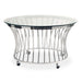 You have found the accent piece your living space has been missing. This coffee table instantly adds a dash of luxury to your home with its modern glam design. The table comes with removable casters, allowing it to move around with ease to rearrange your space if needed. The glass table top pairs perfectly with the chrome finish, while intricate work on the base adds eye-catching elements.