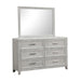 - Multi-Step Finish: The beauty of the natural wood grain is enhanced with a multi-step process including wire brushing and white glazing that results in a light, clear mist gray finish.