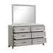 The Fiona Mirror is constructed from solid Acacia, manufactured woods, and oak veneer promising both aesthetic appeal and enduring quality. The natural wood grain is accentuated through a meticulous multi-step finish, culminating in a light, mist gray hue achieved via wire brushing and white glazing. Its classic silhouette is defined by picture frame moldings. The Fiona Mirror seamlessly adapts to various interior styles, from traditional to modern. Its expansive, low-distortion glass ensures a pristine reflection.