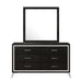 The Huxley 6-Drawer Dresser offers a perfect blend of contemporary glam and durable craftsmanship for your bedroom. This dresser is meticulously crafted from manufactured woods and eco-friendly decorative laminate, ensuring it will last for years. The design features clean lines with metallic accents and flared silver legs for a modern touch. Its finish provides a sleek, sophisticated look that is both timeless and modern, with bold highlighting the metallic accents and smooth surfaces to create a chic, polished aesthetic. The drawers, constructed with English dovetail joinery, roll smoothly on center glides for long-lasting operation. Functional and fashionable, this dresser provides ample storage for clothing, with chic, crystal-studded drawer pulls for easy access.