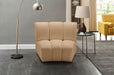Create a seating group that works for every possible situation with this Infinity modular chair and other pieces in the Infinity collection. Upholstered in soft Camel velvet material that feels great against the skin and offers long-wearing beauty, this piece fits with other Infinity items for an infinite number of combinations that get your seating requirements just right but that look just as nice when used on their own.