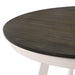 The Maisie Round Wood Two-Tone Dining Table is an ideal blend of quality construction and welcoming rustic charm, perfect for any dining space. This table is crafted from solid rubberwood, manufactured woods, and Mindy wood veneers, ensuring a sturdy and long-lasting addition to your home. The table features a dark brown tabletop with a smooth finish, creating a striking contrast to the rustic white, slightly distressed base, enhancing its farmhouse appeal. Perfect for small space dining, this round table comfortably seats four, making it an excellent choice for intimate settings, kitchen spaces, or dining rooms. The Maisie Dining Table seamlessly combines the warmth and texture of rustic elements with the sleek, clean lines of modern design, creating a dining space that feels both fresh and timeless. This table is a practical and stylish choice, perfect for making every meal a delightful experience.