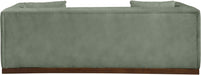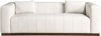 A minimalist masterpiece, the Mallina sofa combines form and function for a modern and stylish look. Its classic design and rich leather upholstery make it a sophisticated statement piece that will never go out of style. The clean lines, paired with a brown walnut finished base, create a sophisticated and inviting atmosphere.