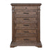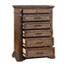 - Rich Walnut Finish: The heirloom finish is achieved through a multi-step process that includes mild distressing, wire brushing, and charcoal glazing that enhances the natural beauty of the wood.