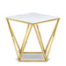 The Mason table, by Meridian Furniture. Featuring a beautiful contemporary design. Constructed of gold finished stainless steel and solid stone top, it's guaranteed to be the highlight of any room.