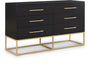 Inject bold, modern styling into your bedroom with this Maxine dresser. The dresser's contemporary design is nothing short of stunning, with unassuming lines and eye-grabbing hardware. A rich finish is modish and up-to-the-minute, while the brushed metal legs and drawer handles give this unit added flair. A metal base raises the dresser from the floor for a noticeably upscale vibe. Fill this dresser's drawers with essentials for keeping your bedroom space clean and neat.
