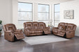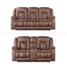 The Morello Reclining Sofa and Console Loveseat is a perfect blend of comfort and style, ideal for any living room. This set includes a plush couch and a convenient console loveseat, both upholstered in 100% polyester fabric that mimics the luxurious look of leather without the high cost. The saddle color adds a warm, inviting feel to your space. Designed for durability and style, the Morello set features double-stitch detailing and overstuffed arm, seat, and back cushions for superior comfort. The fully upholstered chaise recliner footrests provide an unparalleled relaxation experience. Built with a combination of hardwood and manufactured wood frames, coil spring cushions wrapped in resilient foam, and no sag seat suspension, this set ensures long-lasting comfort and support. The loveseat''s center console offers practical features such as storage for remote controls and built-in cupholders for your beverages. With its casual, transitional style, the Morello set brings a comfortable, lived-in ambiance to your home. Experience the perfect mix of style, comfort, and convenience with the Morello 2 Piece Reclining Sofa and Console Loveseat.