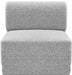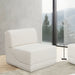 Meet the epitome of style and functionality with this Ollie boucle fabric living room chair, part of the Ollie modular collection. A contemporary marvel, this chair features chic and inviting rich boucle fabric upholstery, giving it a sumptuous texture that oozes elegance and luxury. Curved corners add to the visual look of the chair while maximizing seating comfort while lounging, reading, or entertaining. Pair it with other items in the Ollie collection easily, thanks to an attachment latch underneath.