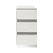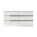 The Paradox Six Drawer Dresser combines contemporary appeal with robust functionality. Its gleaming gloss laminate finish offers a sleek, modern look while providing the practical benefits of scratch and water resistance. Crafted from a combination of solid and manufactured woods, this dresser ensures long-lasting durability. The fully finished drawers offer snag-free storage and glide effortlessly on full-extension, ball-bearing drawer glides. The show-stopping design, featuring a modern finish and glittering silver mylar inlays, transforms your bedroom into a high-style retreat. With six spacious drawers, this dresser provides ample storage space for all your clothing, making it an essential and stylish addition to any bedroom.