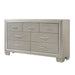The Platinum Dresser glams up your bedroom. Its chic finish is accented by a decorative mirror trim throughout. Completing this fabulous look are sparkling, crystal and chrome handles to indulge your inner starlet