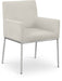 Casual comfort is the order of the day when dinner guests relax from the cozy confines of this Reeves soft chenille fabric dining chair. Sumptuously padded arms, back, and seat ensure total comfort from appetizers through dessert, and the neutral, solid-colored upholstered makes it easy to pair this dining chair with the table of your choice. An all-metal brushed silver frame and legs lend a contemporary finish and impeccable sturdiness and strength for long-term enjoyment.