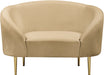 Get comfy while remaining chic in this elegant Ritz velvet chair. Plush-colored upholstery provides a soft texture that is pleasing to the senses, while its curved design offers a contemporary touch to your home furnishing. metal legs complement the chair's sophisticated color, creating a gallant piece anyone would be proud to display in their home.