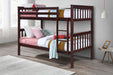 Cherry Brown Bunk Bed, Twin Over Twin Bunk Bed, Fully Slatted, Separates Into two Twin Beds, Hardwood/Plywood Mix Construction