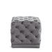 Unwind in luxury with your feet propped atop this Stella Ottoman/Stool. Luxe velvet upholstery covers every square inch of this stool's top and sides, giving it a glamorously contemporary look. The soft color blends easily with any decor theme, and the deep button tufting in a diamond-like grid pattern adds a lavish feel while helping the stool keep its loft. Position it near your favorite easy chair to create a cozy spot to relax at day's end.
