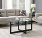 8mm Clear Tempered Glass Top, Beveled Edges, Fan Design Under Carriage Shelving, Attached Glass Tops, Cross Bar Table Design
